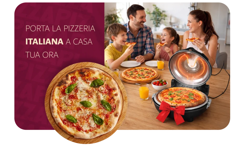 È un vero forno per pizza professionale, pensato per l’uso domestico. Porta l’esperienza della pizzeria italiana direttamente nella tua cucina.